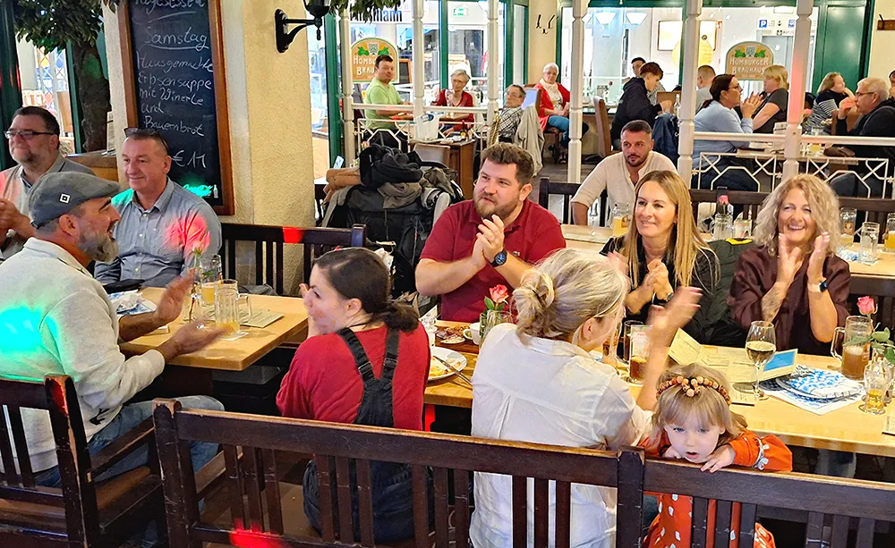 Das Brauhaus hat wieder Bock!Traditioneller Bockbieranstich im Homburger Brauhaus10.11.2025Auch der diesjährige Bockbieranstich im urgemütlichen Brauhaus war ein echtes Erlebnis. Es war eine fantastische Gelegenheit, regionale Brautradition und Geselligkeit zu feiern, auch wenn man sich nicht gerade in Bayern befindet. Diese Veranstaltung bietet Jahr für Jahr eine tolle Gelegenheit, das urige Flair eines traditionellen Bierfests in Homburg zu genießen. Wirtin Marzena Wierz, Birgit Wessely und das gesamte nette Team konnten zum allgemein beliebten Bockbieranstich wieder viele Gäste begrüßen, darunter jede Menge Stammgäste und liebe Freunde des Brauhauses. Marzena Wierz bedankte sich ganz herzlich bei den Besuchern für ihre langjährige Treue und bei ihrem Team für die engagierte Arbeit. Anschließend ging es sofort los mit dem feierlichen Anstoß des Bockbierfasses. Diesmal war es dem Braumeister Raúl Campusano-Jost persönlich vorbehalten mit geübter Hand den Hammer zu schwingen. Unter dem Beifall des Publikums gelang der Anstich problemlos! Dabei durften traditionelle Rufe wie „O‘zapft is!“ nicht fehlen – ein symbolträchtiger Moment, der für die Gäste stets ein Highlight darstellt und den Auftakt zu einem ausgelassenen Fest markiert. Danach prosteten Marzena und Birgit zusammen mit Raúl den vielen Gästen zu. Das frisch angestochene Bockbier, ein kräftiges, malzbetontes Starkbier, ist im Homburger Brauhaus besonders beliebt, weil es nur zur speziellen Jahreszeit gebraut wird. Mit seinem vollmundigen Geschmack und höheren Alkoholgehalt hat es längst seine Freunde gefunden. Für die musikalische Umrahmung sorgte, wie schon im letzten Jahr das Duo „Coverliere“. Die hatten von leichtem Jazz, über lockere Tanzmusik bis hin zu modernen Pop-Beats und kernigem Rock alles drauf. Bei ihrem musikalischen Repertoire war für jeden Geschmack genau das Richtige dabei. Die Gäste konnten mitschunkeln, klatschen oder sogar tanzen – je nachdem, wie man drauf war. Zu einem echten Bockbieranstich gehören natürlich auch deftige Speisen wie sie typisch sind im Homburger Brauhaus. Das rustikale Essen passte perfekt zum charaktervollen Bier und trug zum authentischen, gemütlichen Ambiente bei. Ein solcher Abend wie beim Bockbieranstich im Brauhaus vereint Geselligkeit, gute Musik und Genusskultur und wird nicht nur von Stammgästen, sondern auch von neugierigen Besuchern gerne angenommen. Übrigens, passend zur Jahreszeit empfiehlt sich das Homburger Brauhaus jetzt neben dem dunklen Starkbier auch mit seinen feinen Wildgerichten, sowie mit anderen herbstlichen Angeboten. Darüber hinaus ist die erste Homburger Wirtsbrauerei auch für Weihnachtsfeiern bestens geeignet. Man sollte also jetzt schon an eine Reservierung denken mit einem Anruf unter 06841-2466. Merken sollte man sich aber unbedingt den 29. November! Dann nämlich lädt das Homburger Brauhaus ein zu einer Einstimmung in die Adventszeit. Für die entsprechende Stimmung wird ein DJ sorgen! Weitere Informationen über das Homburger Brauhaus erhalten Sie im Internett unter www.homburger-brauhaus.de. © Heinz Hollinger