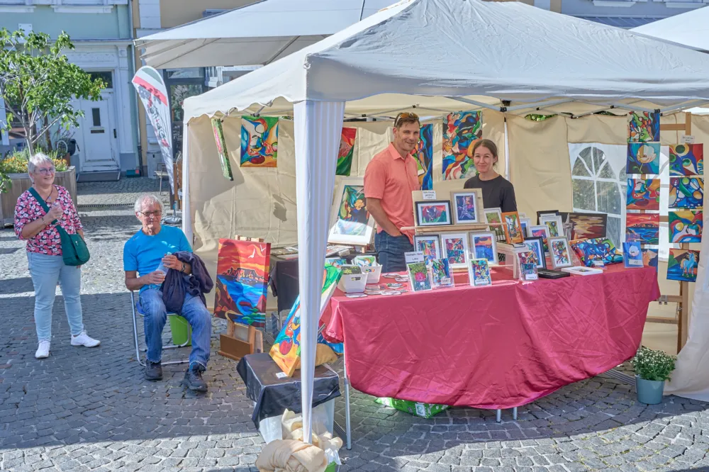 Homburger ARTmosphäre 2025Einzigartige Kunst unter freiem Himmel begeistert in Homburg schon zum 12. Mal10.09.2025Die historische Altstadt von Homburg verwandelte sich am Samstag, dem 30. August, von 10:00 Uhr bis 17:00 Uhr in eine großflächige Kunstausstellungsbühne. Eine lebendige Galerie unter freiem Himmel, diese "ARTmosphäre", die ihrem Namen alle Ehre macht und ein Kunstfestival, das Homburgs Charme mit kreativer Vielfalt verbindet. Tausende Kunstliebhaber und Neugierige zog sie in diesem Jahr in ihren Bann, denn bei strahlendem Sonnenschein präsentierten mehr als 140 Künstlerinnen und Künstler aus der Großregion und darüber hinaus ihre Werke. Die Eröffnung der ARTmosphäre übernahm Philipp Scheidweiler gemeinsam mit dem Kulturbeigeordneten Raimund Konrad, der Rody Reyes mit seiner Band "Havanna Con Klasse" zum gleichzeitig stattfindenden Jazz-Frühschoppen ankündigen konnte. Mit auf der Bühne standen zur offiziellen Eröffnung überdies Christoph Neumann, der Leiter des Kulturamts, und Dr. Françoise Mathis-Sandmaier, die Kuratorin der ARTmosphäre. Neben der Band auf der Marktplatzbühne spielte darüber hinaus auch das Duo "Passion Two" an wechselnden Plätzen. Es ist immer wieder faszinierend zu sehen, wie die Kunstwerke die Gassen und Plätze der Altstadt neu beleben, und gerade auch der Dialog zwischen den Künstlern und dem Publikum ist das Herzstück dieser Veranstaltung – neben dem Verkauf, versteht sich. Die Veranstaltung bot nicht nur eine Plattform für etablierte Namen, sondern gab auch jungen Talenten eine Bühne. Viele Nachwuchskünstler nutzten die Gelegenheit, um ihre Arbeiten einem breiten Publikum zu präsentieren und erste Kontakte zu knüpfen. Das Spektrum an künstlerischen Techniken war dabei weit gefasst und formal offen. Es reichte von der Malerei und Bildhauerei über die Porträtzeichnung, Karikatur, Fotografie, Objekt- und Textilkunst bis hin zu Schmuck, Holzkunst und Performance. Lokale Gastronomen trugen zum leiblichen Wohl der Besucher bei. Die "Kunstplätze" waren neben dem Marktplatz auch der Christian-Weber-Platz, der ehemalige Wappenplatz (heute Ilmenauer Platz genannt) und natürlich die Eisenbahnstraße mit ihrer Fußgängerzone. Die "ARTmosphäre 2025" bewies eindrucksvoll einmal mehr, dass Kunst keinem Museum vorbehalten sein muss, sondern im öffentlichen Raum eine einzigartige Dynamik entfalten kann. Mit einer gelungenen Mischung aus Tradition und Moderne, regionaler Verbundenheit und internationaler Ausstrahlung hat sich das Festival als fester Bestandteil des saarländischen Kulturkalenders etabliert. Die Vorfreude auf das nächste Jahr ist bereits spürbar. Vielen Dank sei nochmals dem Veranstalter beschieden! Die Homburger Kulturgesellschaft gGmbH organisiert nämlich nicht nur jedes Jahr diese schöne Veranstaltung, sondern entwirft auch immer eine schön übersichtlich gestaltete Infobroschüre mit Illustrationen und ALLEN angemeldeten Künstlerinnen und Künstlern sowie mit vielen Kontaktdaten darin. Auf diese Weise ist man als Besucher auch im Nachhinein noch imstande, Kontakt mit den Ausstellern aufzunehmen, wenn man am Tag der Freiluftkunstausstellung mal vergessen hat etwas zu fragen oder zu kaufen. Text: Chris Ehrlich Bilder: Chris Ehrlichzur Übersicht Sie möchten eine Werbeanzeige schalten?Rufen Sie uns gerne unter +49 (0) 68 41 / 61 40 5 an oder nutzen Sie unser Kontaktformular.BagatelleDie Homburger StadtzeitungSeit Oktober 2019 bieten wir Ihnen auch an, die Bagatelle online zu lesen. Klicken Sie einfach auf den unten stehenden Link, um dann kostenfrei die Bagatelle als PDF lesen zu können. Um künftig noch schneller und aktueller zu sein, werden wir auch online für Sie noch präsenter sein. Viel Spaß wünscht Ihnen das Team der Homburger Stadtzeitung! Online-Ausgabe