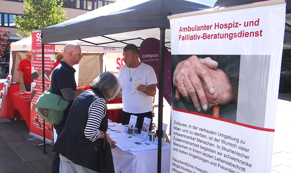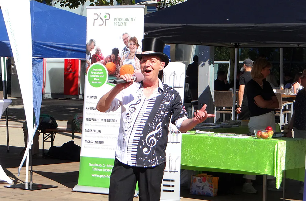 Memory WalkErlebnisreicher Infotag in Sachen Demenz09.10.2025Passend zum Monat der Demenz, warteten auf die Besucher*innen jede Menge Informationen und Aktionen zu Thema Demenz. Außerdem gab es die Möglichkeit, Vorträgen zu lauschen und an Ständen mit den Mitgliedern des GPND zu sprechen und rund um die Themen Prävention, Umgang mit Demenz und Unterstützungsangebote ins Gespräch kommen. Im Rahmen dieser Veranstaltung waren auf dem Christian-Weber-Platz 10 Infostände der Mitglieder des Netzwerks Demenz aufgebaut. An den Infoständen präsentierten die Netzwerkpartner ihre Arbeit und beantworteten den Interessierten – Menschen mit Demenz und ohne Demenz – ihre Fragen rund um das Thema Demenz. Ein Stadtführer gab den Besuchern auf dem Christian-Weber-Platz Einblicke in die Geschichte der Stadt Homburg. Weitere Aktivitäten vor Ort waren u. a. auch: der Auftritt einer Ukulele-Gruppe mit singenden Kindern des Albert-Schweitzer-Kinderhauses aus Erbach, Vorstellung neuer Museumskoffer zum Thema „60 Jahre" und „Fußball". Ein Auftritt des Unterhaltungskünstlers Tommy Leidinger mit Liedern zum Erinnern und Mitsingen. An dem Infostand der Psychosozialen Projekte gab es einen Alterssimulationsanzug, der jüngeren Menschen die Möglichkeit bot, in die Erfahrungswelt älterer Menschen einzutauchen. Am Infostand vom Ökumenischen Ambulanten Hospiz- und Palliativberatungsdienst konnte man am Glücksrad drehen und süße Gewinne von früher erhalten. An dem Infostand der Organisation Herz und Pfote Therapiebegleithunde e. V. konnte man viel erfahren über die tolle Arbeit der speziell ausgebildeten Tiere. Diese Hunde werden in therapeutischen Umgebungen eingesetzt, um eine Brücke zwischen Menschen zu schlagen und positive Interaktionen zu ermöglichen. Übrigens, die PSP Saarpfalz bietet ein breites Spektrum an Dienstleistungen, das sich an den individuellen Bedürfnissen der Betroffenen orientiert. Dazu gehören unter anderem Beratungsangebote, therapeutische Maßnahmen, Unterstützung bei der sozialen Integration sowie präventive Maßnahmen zur Förderung der psychischen Gesundheit. Ein wichtiger Schwerpunkt der PSP liegt in der ambulanten psychosozialen Betreuung, bei der Betroffene in ihrem häuslichen Umfeld begleitet und unterstützt werden. Diese Unterstützung kann sowohl Einzelpersonen als auch Familien betreffen. Darüber hinaus arbeitet die PSP eng mit anderen sozialen Einrichtungen, Ärzten, Therapeuten und Institutionen zusammen, um eine umfassende und vernetzte Versorgung sicherzustellen. Neben der direkten Betreuung von Menschen mit psychischen Problemen legt die PSP Saarpfalz auch großen Wert auf Prävention und Aufklärung. Durch Informationsveranstaltungen wie die „Memory-Walk-Veranstaltung", Workshops und Schulungen werden Betroffene, Angehörige und Fachkräfte sensibilisiert und informiert, um frühzeitig auf Anzeichen psychischer Belastungen reagieren zu können. Die PSP Psychosoziale Projekte Saarpfalz spielen eine wichtige Rolle in unserer Region, indem sie zur Entstigmatisierung psychischer Erkrankungen beitragen und den Betroffenen eine Perspektive zur Bewältigung ihrer Situation bieten. Die Veranstaltung auf dem Christian-Weber-Platz besuchten nicht nur Passanten und Interessierte, sondern auch Angehörige von Betroffenen sowie Betroffene der Krankheit „Demenz" selbst. Bei der „Memory-Walk-Veranstaltung" auf dem Christian-Weber-Platz wurden neben allgemeinen Infos aus der praktischen Betreuungsarbeit auch individuelle Hilfsangebote erläutert. Ziel des Infotages war es, allen Interessierten das Thema „Demenz" etwas näher zu bringen. Kontakt: c/o Psychosoziale Projekte gGmbH Goethestr. 2, 66424 Homburg, Telefon 06841/93 43-0, www.psp-homburg.de © Heinz Hollinger Bilder: Heinz Hollingerzur Übersicht Sie möchten eine Werbeanzeige schalten?Rufen Sie uns gerne unter +49 (0) 68 41 / 61 40 5 an oder nutzen Sie unser Kontaktformular.BagatelleDie Homburger StadtzeitungSeit Oktober 2019 bieten wir Ihnen auch an, die Bagatelle online zu lesen. Klicken Sie einfach auf den unten stehenden Link, um dann kostenfrei die Bagatelle als PDF lesen zu können. Um künftig noch schneller und aktueller zu sein, werden wir auch online für Sie noch präsenter sein. Viel Spaß wünscht Ihnen das Team der Homburger Stadtzeitung! Online-Ausgabe