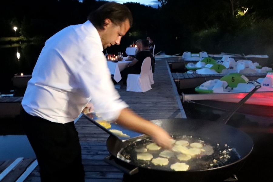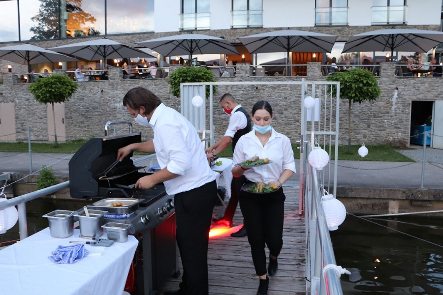Peter´s Hotel & Spa, Biergarten und AlmFür jeden Geschmack das Richtige!15.07.2020Sommerzeit ist Ferienzeit und das heißt für die Gastronomie, vor allem die Außengastronomie mit ihren Terrassen und Biergärten, jetzt ist Hauptsaison. So ist es auch in PETERS Hotel & Spa, im Biergarten und in der Alm, dem neuen Restaurant direkt neben dem großen Biergarten in Homburg-Jägersburg. Wir hatten die Gelegenheit uns kurz mit Peter Trösch, dem sehr agilen und sympatischen Inhaber, über seinen Gastronomiebetrieb der im Naherholungsgebiet Jägersburg liegt, zu unterhalten. Er berichtete uns, dass durch die Lockerungen der Auflagen für die Gastronomie und natürlich durch das schöne Wetter das gesamte „Gastronomie-Ensemble“ Biergarten, Alm und Seeterrasse, richtig super angenommen wird. Ebenfalls sehr gut besucht waren die angebotenen und toll durchgeführten Events, wie zum Beispiel die schönen Candlelight-Dinners auf dem Bootssteg und der BBQ-Grillabend mit „Front Cooking“ durch zwei Köche aus dem Hause Peters auf der großen See-Terrasse. Auch die sonntäglichen Specials wie das „Schmoren und Kochen“ in der großen Gusspfanne im Biergarten, mit Gerichten wie bei Muttern, kam und kommt bei den Gästen, die uns aus Nah und Fern besuchen, sehr gut an. Nicht zu vergessen sind die Tret- und Ruderboote, die zu Peters Alm gehören, mit denen die heimlichen Freizeitkapitäne den Brückweiher etwas näher kennen lernen können und der Fun-Forrest Kletterpark. Doch die Naherholung Jägersburg bietet weitaus mehr als den Brückweiher. Doch zurück zu den Lokalitäten von Peters, denn jetzt gilt es die nächsten Veranstaltungen für Biergarten und Almhütte, innerhalb den Richtlinien und Vorgaben der Behörden, zu planen. Denn was wäre eine wunderschön gestaltete Almhütte mit Biergarten ohne Livemusik und kernigem Oktoberfest? Hierzu haben Peter Trösch und Nils Ackermann, zuständig für Alm, Restaurant und Biergarten schon weitere gute Ideen und Vorstellungen. So soll es alsbald, wenn man von den Behörden grünes Licht erhält, neben Karaoke und zünftigen Frühschoppen auch regelmäßigen Livemusik-Veranstaltungen in der Alm und im Biergarten geben. Die Alm steht auch Firmen für die eigene Feierlichkeit, wie das Jubiläum oder die eigene Feier, zur Miete zur Verfügung. Die Almhütte ist die optimale Eventlocation und eignet sich bestens für Geburtstage und Hochzeiten, eben für alle Familienfeierlichkeiten! Um das Speisenangebot im Biergarten neben den Tagesangeboten und der recht umfangreichen Karte noch Abwechslungsreicher zu gestalten, werden auch mal Hendl gegrillt, es wird etwas Spezielles und Besonderes fürs Auge geben. „Wir nutzen den Traumstandort Jägersburger Naherholung und möchten ihn noch weiter nach vorne bringen“. Dazu trägt natürlich auch das gesamte Umfeld Jägersburger Naherholung, mit den weiteren Angeboten rund um den Brückweiher bei. „Es macht zur Zeit einfach Spaß unsere gut gelaunten Gäste zu bedienen und an den Tischen zu umsorgen und dieser Spaß geht über auf unser gesamtes, recht junges und freundliches Team“. Apropos Team: wenn jemand von unseren Leserinnen und Lesern gastronomisch ausgebildet ist und beruflich eine neue Herausforderung, eine neue Aufgabe sucht, der ist bei PETERS Hotel & Spa, Alm und Biergarten in Jägersburg an der richtigen Adresse. Denn Peter Trösch sucht immer gute, engagierte und fachlich kompetente Mitarbeiterinnen und Mitarbeiter, die ihren Beruf lieben und leben. Das Team von PETERS Hotel & Spa, Biergarten und Alm freut sich auf Ihren Besuch. zur ÜbersichtSie möchten eine Werbeanzeige schalten?Rufen Sie uns gerne unter +49 (0) 68 41 / 61 40 5 an oder nutzen Sie unser Kontaktformular.BagatelleDie Homburger StadtzeitungSeit Oktober 2019 bieten wir Ihnen auch an, die Bagatelle online zu lesen. Klicken Sie einfach auf den unten stehenden Link, um dann kostenfrei die Bagatelle als PDF lesen zu können. Um künftig noch schneller und aktueller zu sein, werden wir auch online für Sie noch präsenter sein. Viel Spaß wünscht Ihnen das Team der Homburger Stadtzeitung! Online-Ausgabe