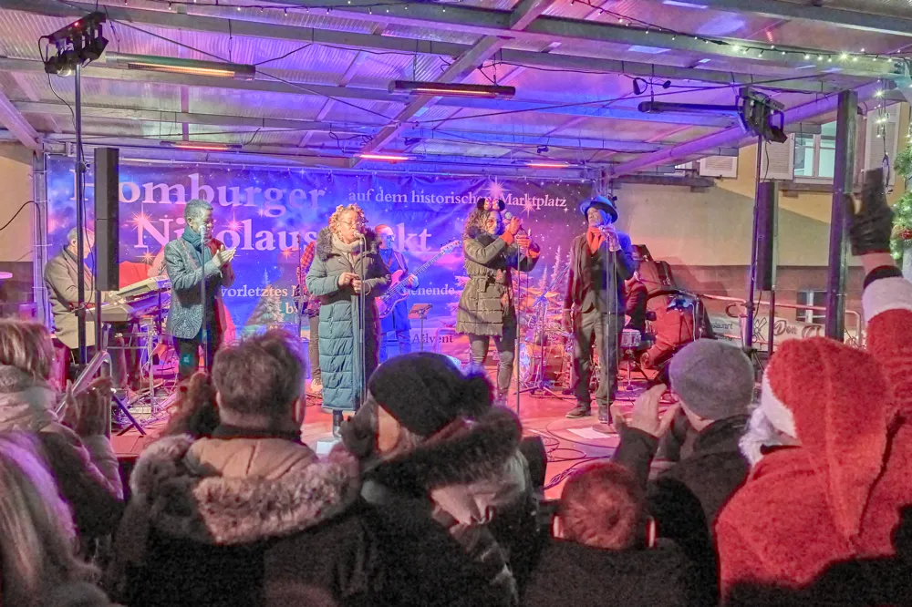 "Wir warten aufs Christkind"Party auf dem Homburger Marktplatz10.01.2026Doch einer ragt jedes Jahr heraus, weil er dieses ganz spezielle "Wir-Gefühl" ausstrahlt: die "Wir warten auf’s Christkind"-Party, immer am 23. Dezember, und das nun schon seit 2017. Wenn die letzte Hektik der Weihnachtseinkäufe in der Talstraße verflogen ist, und die Lichter auf dem historischen Marktplatz erstrahlen, dann verwandelt sich das Areal mit seinen umliegenden Gastronomiebetrieben in eine festliche Open-Air-Bühne. Der 23.12. ist der Abend der Heimkehrer, der Alteingesessenen und der Familien. Man trifft Freunde, die man eventuell ja das ganze Jahr über nicht gesehen hat, wärmt die Hände am Glühwein und spürt: Jetzt ist Weihnachten! Im vergangenen Dezember 2025 war die Gänsehaut-Garantie mit Gospel-Power unter freiem Himmel wieder einmal inklusive. Mit der Formation "Federkeil Music – Gospel Power Voices" holte Elmar Federkeil internationale Weltklasse-Musik erneut direkt zu uns nach Homburg. Von 18 bis 22 Uhr verwandelten Stimmen wie die von Journi Sings, Simone Swift, Elijah Salah und Bernard „Smitty“ Smith den Marktplatz in eine Kathedrale des Soul. Es war die perfekte Mischung: Mal besinnlich und tiefgreifend mit klassischen Gospel-Hymnen, mal mitreißend mit Soul- und RnB-Rhythmen. Ab dem ersten Moment bewies Homburg erneut, dass es nicht nur feiern, sondern auch verdammt textsicher mitsingen kann. Begleitet wurden die Sänger von einer erstklassigen Band rund um Martin Preiser am Piano, Luigi Burgio am Bass, Wolfgang Sing an der Gitarre und natürlich Elmar Federkeil, selbst an den Drums. Der Abend war ein echtes Geschenk an die Bürger der Stadt! Das Schönste daran? "Diese Party ist für viele von uns der eigentliche Auftakt in die Feiertage. Es ist dieses Gefühl von Gemeinschaft, das den Abend so einzigartig macht", sagte jemand aus dem Publikum. Dank der Unterstützung der Dr. Theiss Naturwaren GmbH und der Organisation durch die Homburger Kulturgesellschaft blieb der Eintritt auch in diesem Jahr frei. Ein friedliches Miteinander, Lachen, Tanzen und Anstoßen – besser kann man das Veranstaltungsjahr nicht ausklingen lassen, oder? Das Team von Vin!Oh und Oh!lio kümmerte sich um die kulinarischen Genüsse der Marktplatzgäste, und wer diesen Abend miterlebt hat, nahm garantiert eine besondere Portion Vorfreude mit in den Heiligabend. Die "Wir warten aufs Christkind"-Party bleibt eben das, was sie von Anfang an war: unverzichtbar, emotional, typisch Homburg und ein Abend der Superlative. Die Stadt Homburg hat einmal mehr gezeigt, wie schön "Warten" sein kann. In diesem Sinne wünscht die Redaktion der Bagatelle allen Leserinnen und Lesern ein FROHES NEUJAHR! Text: Chris Ehrlich Bilder: Chris Ehrlichzur Übersicht Sie möchten eine Werbeanzeige schalten?Rufen Sie uns gerne unter +49 (0) 68 41 / 61 40 5 an oder nutzen Sie unser Kontaktformular.BagatelleDie Homburger StadtzeitungSeit Oktober 2019 bieten wir Ihnen auch an, die Bagatelle online zu lesen. Klicken Sie einfach auf den unten stehenden Link, um dann kostenfrei die Bagatelle als PDF lesen zu können. Um künftig noch schneller und aktueller zu sein, werden wir auch online für Sie noch präsenter sein. Viel Spaß wünscht Ihnen das Team der Homburger Stadtzeitung! Online-Ausgabe