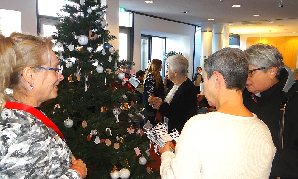 Wunschbaum-AktionBei der Kreissparkasse Saarpfalz09.12.2025In der Geschäftsstelle der Kreissparkasse Saarpfalz fand in der Vorweihnachtszeit mit der Weihnachtsbaum-Aktion ein besonderes Event statt. Dort erstrahlt jetzt ein liebevoll geschmückter Weihnachtsbaum, der die Herzen von Kundinnen und Kunden, Mitarbeitenden und Mitmenschen zum Leuchten bringt. Geschmückt wurde der Baum gemeinsam von Homburger Schülerinnen und Schülern sowie den Bewohnerinnerinnen und Bewohnern eines Homburger Seniorenheims. Ziel der KSK-Verantwortlichen ist es, mit dieser weihnachtlichen Aktivität Generationen zusammenzubringen und insbesondere Seniorinnen und Senioren in Seniorenheimen, die über die Feiertage häufig einsam sind, mit der damit verbundenen Wunschzettel-Aktion mit einem kleinen, liebevollen Geschenk zu erfreuen. Los ging es am 17. November, als der Tannenbaum in der Geschäftsstelle der Kreissparkasse geschmückt wurde. Schülerinnen und Schüler der Homburger Oberlin-Schule verzierten den Baum mit selbstgebasteltem Schmuck, wie beispielsweise Sternen und Anhängern. Erstmalig in diesem Jahr wurden auch Wunschzettel am Baum aufgebunden. Jeder Zettel trägt einen kleinen, persönlichen Weihnachtswunsch von Bewohnerinnen und Bewohnern der Seniorenresidenz „Haus am Schlossberg“ in Homburg, wie etwa ein warmer Schal, ein Lieblingsbuch oder Pralinen. Einige Bewohnerinnen und Bewohner der Residenz waren vor Ort, um beim Anbringen der Wunschzettel zu helfen und um wertvolle Momente mit den jungen Menschen zu teilen. So entstand gemeinsam ein lebendiger Ort des Austauschs, an dem Generationen zusammengekommen sind um Freude zu schenken und um einander zu stärken. Nachdem der Tannenbaum festlich geschmückt und die Wunschzettel angebracht waren, war noch gemeinsam Zeit für einen Austausch zwischen Jung und Alt. Auch mit leckerem Weihnachtsgebäck hatte die KSK vorgesorgt. Was bedeutet diese Tannenbaum-Aktion für den vorweihnachtlichen Publikumsverkehr in der KSK-Geschäftsstelle? Ganz einfach: Wer möchte nimmt sich einen Wunschzettel vom Baum und besorgt das entsprechende Geschenk, das den Wunschzettel realisiert. Danach gibt man das entsprechende Geschenk zusammen mit dem Wunschzettel am Infopoint der KSK-Geschäftsstelle ab. Das Einpacken und die Übergabe der Geschenke übernehmen Mitarbeitende der Kreissparkasse Saarpfalz. 115 Wünsche können so erfüllt werden! Das Ziel dieser weihnachtlichen Aktion ist es, die Gemeinschaft zu stärken und durch kleine Gesten der Nächstenliebe zu einer besinnlichen und frohen Weihnachtszeit beizutragen. Bei der Kreissparkasse freut man sich über eine große Beteiligung, damit die Kerzen am Weihnachtsbaum nicht nur physisch, sondern vor allem im Herzen der Seniorinnen und Senioren leuchten. Die Kreissparkasse Saarpfalz versteht sich als verlässlicher Partner, der weit über Finanzdienstleistungen hinausgeht. Man will Mitgestalter von Gemeinschaft, Hoffnung und Zusammenhalt sein. Sollte diese Aktion ein voller Erfolg werden, so war zu erfahren, wird die Aktion im kommenden Jahr mit weiteren Einrichtungen wiederholt werden, um noch mehr Menschen in unserer Heimat ein Stück Weihnachtszauber zu schenken. © Heinz Hollinger