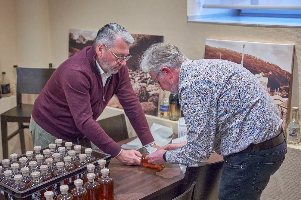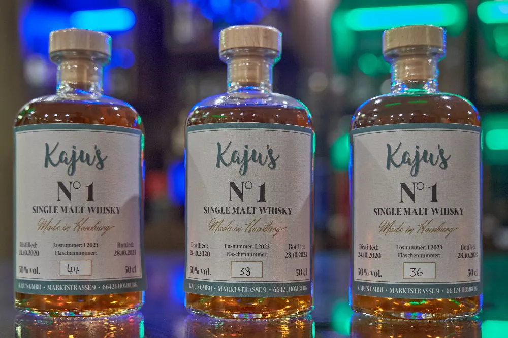 1. Homburger Single Malt WhiskyÖffnung des Fasses erfolgte in Kaju´s Genusswelt am Homburger Marktplatz09.11.2023Endlich war es so weit: Nach 3 Jahren und 4 Tagen des Wartens wurde am 28. Oktober 2023 das 30 Liter Whiskyfass mit dem 1. in Homburg hergestellten Single Malt Whisky in Kaju´s Genusswelt geöffnet. Freunde, Bekannte, Kunden und Genießer des erlesenen Gold-Juice waren um 11.00 Uhr morgens bei Jürgen Kasterka erschienen, um Zeuge des lang ersehnten feierlichen Hammerschlags zur Fassöffnung zu sein. Matthias Rosinski von der Firma SaarWhisky hatte vor 3 Jahren eigens für das Whisky-Schau-Brennen in Kaju´s Genusswelt eine kleine Pot-Still Destillierblase aus Kupfer mitgebracht und zusammen mit Herrn Kasterka ein 30 Liter Fass mit dem eigens an diesem Tag gebrannten "Newmake" befüllt (wir berichteten). Nach 3 Jahren der Fassreife war es für den 1. Homburger Single Malt Whisky nun endlich Zeit, das Licht der Welt zu erblicken. Nachdem Herr Kasterka das Fass geöffnet hatte, führte Matthias Rosinski von der Firma SaarWhisky sogleich die Messung des Alkoholgehalts durch. Stolze 74 % vol. konnten verzeichnet werden. Neben einer durchweg schönen Farbe konnten alle anwesenden Szenekenner zudem auch einen unbeschreiblich guten Duft feststellen. "Ein fruchtiger Single Malt - nicht getorft. Er hat jetzt schon eine schöne Veresterung und tolle Fruchtnoten", führte Herr Rosinski aus. Mit Homburger Wasser wurde der starke Whisky dann auf genussübliche 50 % vol. herunter reduziert. Davor und danach verköstigten die Gäste den Originalwhisky in Fassstärke und den fertigen zur Flaschenabfüllung. "Vordergründig hat der Whisky jetzt noch eine gewisse Alkoholnote, die nach einiger Zeit weggehen wird, bis der Geschmack wieder einheitlich ist. Dies geschieht sobald sich nach der Herunterreduzierung die Alkohol- und Wassermolekülketten wieder zusammensetzen”, so der Fachmann Rosinski. Herr Kasterka meint: "Auf 50 % Vol. hat der Whisky noch einen guten Geschmack, da Alkohol ja ein Geschmacksträger ist, und er sonst in Fassstärke (70 % Vol.) zu scharf wäre”. Er ist mit dem Ergebnis nach der langen Wartezeit durchweg zufrieden – genau wie seine Mitstreiter an diesem Morgen. Im Anschluss an die Herunterreduzierung wurden insgesamt 48 Flaschen mit einer speziellen Vakuumfüllmaschine auf genau 0,5 Liter abgefüllt, dann verkorkt, mit einer Schrumpfkapsel versiegelt und abschließend eigenhändig von Herrn Kasterka gelabelt. Die Anwesenden waren allesamt begeistert ob des gut gelungenen 1. Homburger Whiskys und haben nun durch ihre Teilnahme bei der Fassöffnung eine schöne Erinnerung erfahren dürfen. Kommendes Highlight bei Kaju´s Genusswelt wird wohl eindeutig wieder der “Whisky-Adventskalender” sein, der jetzt schon vorbestellbar ist und ein außerordentliches Geschenk für Whiskyliebhaber darstellt. Bilder: Chris Ehrlichzur Übersicht Sie möchten eine Werbeanzeige schalten?Rufen Sie uns gerne unter +49 (0) 68 41 / 61 40 5 an oder nutzen Sie unser Kontaktformular.BagatelleDie Homburger StadtzeitungSeit Oktober 2019 bieten wir Ihnen auch an, die Bagatelle online zu lesen. Klicken Sie einfach auf den unten stehenden Link, um dann kostenfrei die Bagatelle als PDF lesen zu können. Um künftig noch schneller und aktueller zu sein, werden wir auch online für Sie noch präsenter sein. Viel Spaß wünscht Ihnen das Team der Homburger Stadtzeitung! Online-Ausgabe