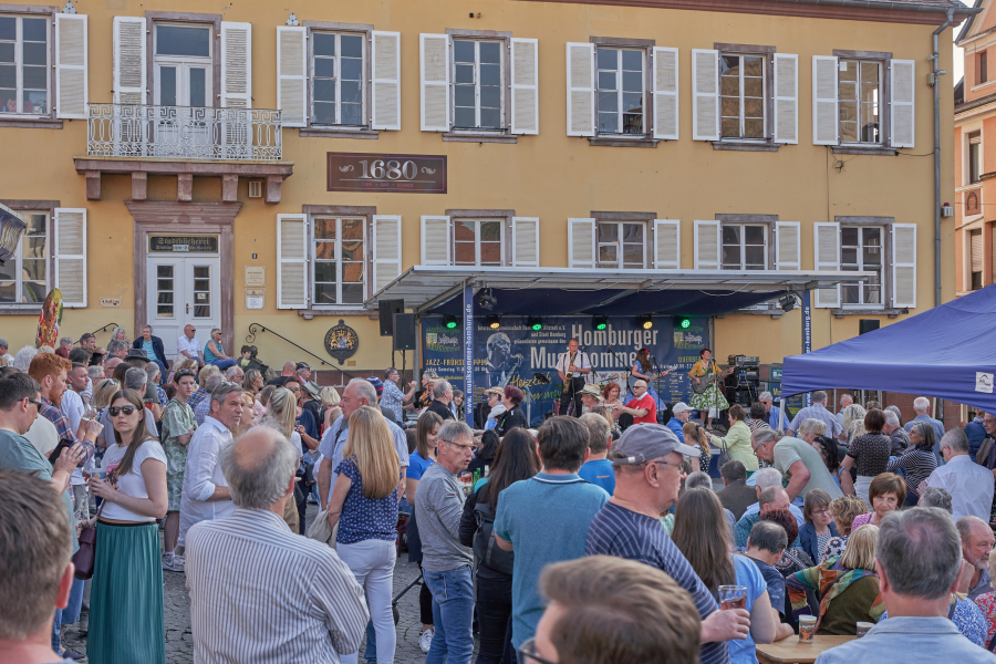 47. Homburger MaifestZog mit viel Musik zahlreiche Besucher in die Stadt10.06.2023Über 20 Bands und eine Pfarrkapelle gaben sich die Ehre und spielten an den vier Tagen aufgrund des verlängerten Pfingstwochenendes bis Montagabend. Die Veranstaltung verteilte sich vom historischen Marktplatz aus über den Christian Weber-Platz bis hin zu dem kleinen Platz rund um den Freiheitsbrunnen vor dem Homburger Hof am Rondell. Mit einer Kinderschmink-Station, einem Riesentrampolin und einem kleinen Karussell war auch speziell an die kleineren Teilnehmer*innen gedacht worden und viele Krämermarkt-Stände, Pommes- und Currywurstbuden sowie Essensstände mit weiteren Speisen und auch Cocktail- und Getränkewagen waren an den einzelnen Bühnen aufgebaut. Das Maifest ist immer auch ein bisschen wie eine Kirmes. Es gab bei diesem Fest ja in der Vergangenheit hier und da auch mal ein Riesenrad auf dem Platz vor der Sparkasse - wer sich daran noch erinnert. Neben den zahlreichen musikalischen Darbietungen und den unermüdlichen Linedancern konnte am Sonntag ein sogenannter "Walkact" in Augenschein genommen werden. Die "Herde der Maschinenwesen" wurden von ihren Hirten durch die Innenstadt getrieben und sorgte dabei für allerlei erstaunte Gesichter bei Jung und Alt. Das diesjährige Maifest war für die Stadt Homburg ein voller Erfolg und wie die bagatelle von allen Einsatzkräften wie dem Sicherheitsdienst Kötter-Security, der Feuerwehr und den Erste-Hilfe-Teams in Erfahrung bringen konnte, verlief die Veranstaltung seitens der Besucher höchst gesittet ab und es gab im Grunde keinerlei nennenswerte Negativvorfälle, und dass, bei den etlichen Teilnehmern an allen vier Tagen. Großes Lob ergeht also an alle Mitwirkenden für die Unterstützung und die Gewährleistung eines so erfolgreichen und reibungslosen Ablaufes des diesjährigen 47. Homburger Maifestes. Chris Ehrlich