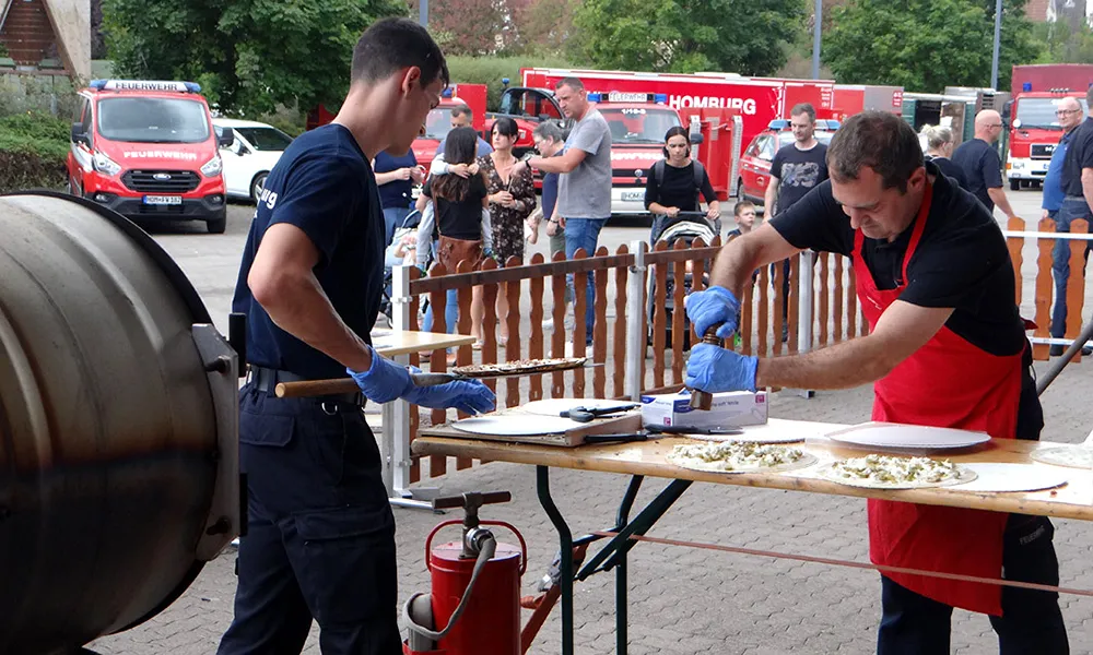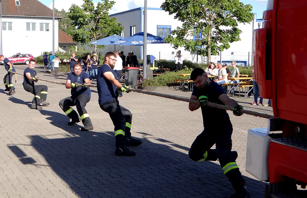 Feuerwehrfest in HomburgZwei Tage Spaß, Action und Blaulicht-Feeling09.10.2025Was für ein Wochenende! Die Freiwillige Feuerwehr Homburg-Mitte hat wieder einmal gezeigt, dass sie nicht nur im Einsatz vollen Einsatz bringt, sondern auch beim Feiern. Zwei Tage lang wurde rund ums Feuerwehrgerätehaus gelacht, gefeiert, gegessen und gestaunt – und das mit einem Programm, das für alle Generationen etwas zu bieten hatte. Los ging’s am Samstag mit einer echten Gaudi: Beim „Fire Truck Pulling“ traten Teams von anderen Feuerwehren, von Vereinen, Gruppen und Hilfsorganisationen gegeneinander an, um möglichst schnell ein schweres Einsatzfahrzeug über eine bestimmte Strecke zu ziehen. Mit dabei auch ein Team mit weiblichen Teilnehmerinnen von der Anästhesie der Uniklinik. Ein toller Spaß - nicht nur für die Zuschauer -, sondern vor allem auch für die Teams am Seil. Da wurde angefeuert, gejubelt und geschwitzt – Teamgeist pur! Am Abend hieß es dann: Blaulicht-Partytime! Unter dem Motto „Feiern dort, wo Helden arbeiten“ verwandelte sich die Fahrzeughalle in einen echten Club. Bei der „Blaulicht Vibes Party“ sorgte DJ BKNS für druckvolle Beats, die Halle wurde von blauem Licht in Szene gesetzt, und die Stimmung kochte. Dazu gab’s coole Cocktails und frisch gemixte Drinks an der Bar. Club-Feeling mitten in Homburg, zwischen Löschfahrzeugen und Einsatztechnik. Übrigens, über diese große Blaulicht-Party berichten wir eingehend an anderer Stelle dieser Ausgabe. Der Sonntag startete gemütlich: Schon ab 10 Uhr traf man sich zum Frühschoppen, musikalisch umrahmt von der Pfarrkapelle Kirrberg. In den Mittagsstunden hatten sich jede Menge Gäste eingefunden, um die leckeren Angebote der Küchenbrigade zu genießen. Bei der Homburger Wehr gibt es halt immer was Gutes zu essen! Selbstverständlich durfte auch das Homburger Karlsberg Bier nicht fehlen! Nach dem traditionellen Mittagessen wartete ein abwechslungsreicher Nachmittag. Bei Fahrzeugschau, Führungen durch die Wache und spannenden Schauübungen konnten große und kleine Besucher die Feuerwehr hautnah erleben. Ein Highlight: die Vorführungen der Jugendfeuerwehr, die eindrucksvoll zeigte, was der Nachwuchs schon draufhat. Zwischendurch zogen die imposanten Fahrzeuge immer wieder viele Blicke auf sich. Aber auch die aktive Wehr begeisterte mit ihren realitätsnahen Demonstrationsübungen. So wurde z.B. Eine Person aus einem auf der Seite liegenden PKW-Kombi befreit. Das Publikum konnte dabei hautnah miterleben mit welch technischem Aufwand und Geschick so eine Rettung vonstattengeht. Ob „Fire Truck Pulling“, Party, Tradition oder spannender Einblick ins Ehrenamt – das Feuerwehrfest des Löschbezirks Homburg-Mitte war ein voller Erfolg und ein echtes Fest für die ganze Familie. © Heinz Hollinger
