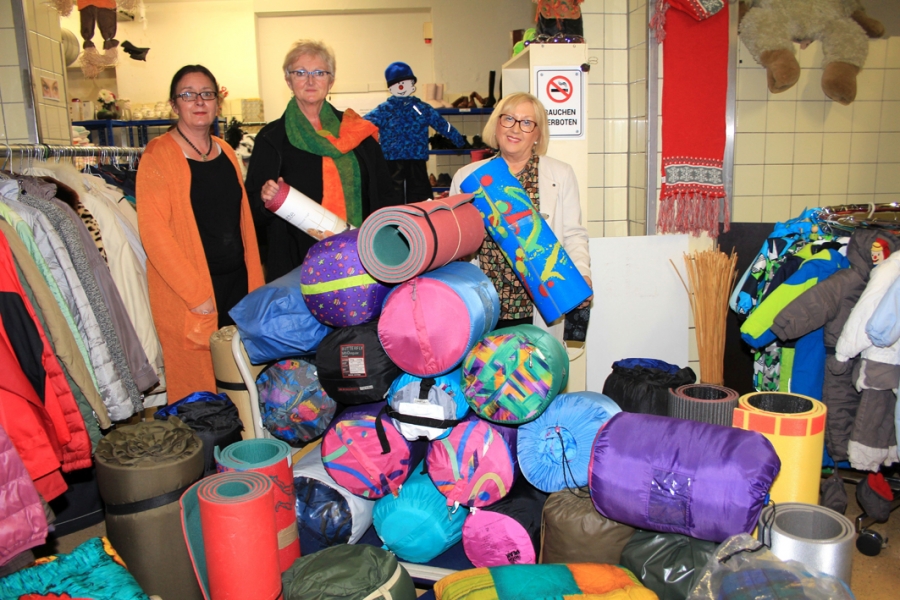 Städtische Kleiderkammer hilft ObdachlosenUnterstützung Hand in Hand16.11.2020Die städtische Kleiderkammer in Erbach hilft obdachlosen Menschen nicht nur in Homburg: seit Jahren unterstützt sie auch „Ingos kleine Kältehilfe – Hand in Hand e.V.“. Der Verein aus Saarbrücken verteilt unter anderem Winterschlafsäcke, Isomatten und Männerhandschuhe an wohnungslose Personen. Vor kurzem hatte die Kleiderkammer wieder einen Aufruf gestartet. Beigeordnete Christine Becker, Claudia Ohliger vom Amt für Jugend, Senioren und Soziales sowie die Leiterin der Kleiderkammer, Bettina Dejon, zeigten sich erfreut über die große Resonanz der Spender. Insgesamt 25 Schlafsäcke, zwölf Isomatten sowie mehrere Handschuhe waren in der Kleiderkammer abgegeben worden. „Wir haben alles gewaschen und desinfiziert“, erklärte Dejon.